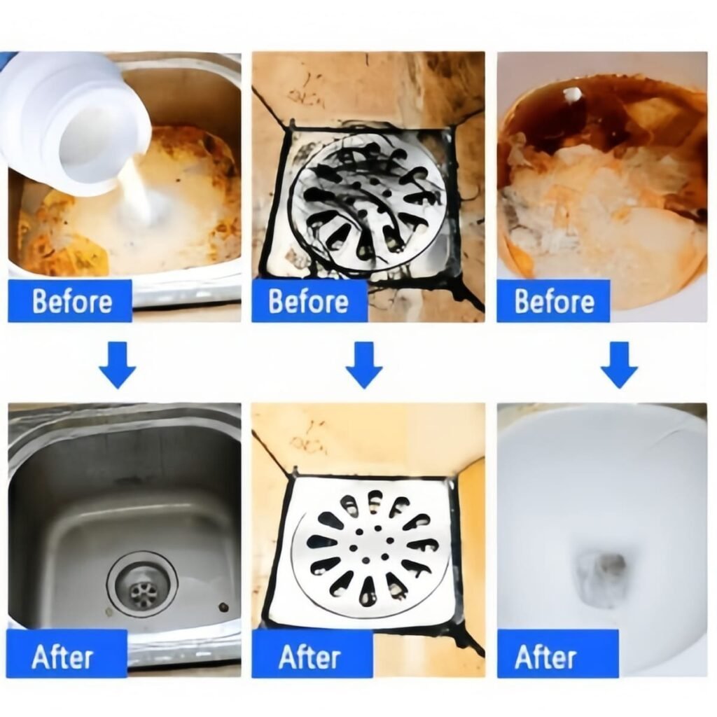 HANYA DENGAN SEKALI TUANG! Segala macam kotoran, sisa makanan, rambut, dan lain-lain yang mengendap di saluran air akan BERSIH SEKETIKA
